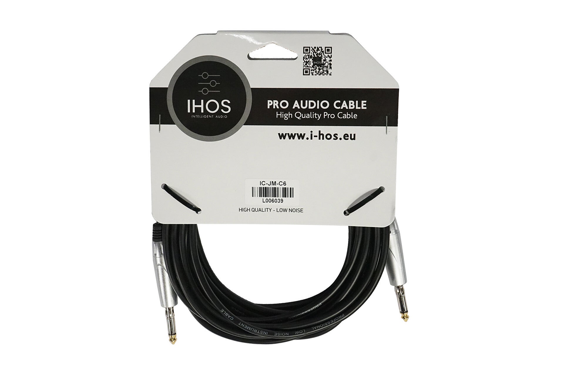 Instrumentkabel 6 meter, zwart, beide zijden 6,3 mm mono jack.
